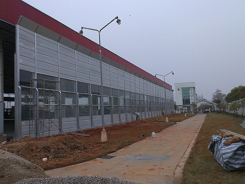 聲屏障主要由鋼結(jié)構(gòu)立柱和吸隔聲屏板兩部分組成,立柱是聲屏障的主要受力構(gòu)件,它通過(guò)螺栓或焊接固定在道路防撞墻或軌道邊的預(yù)埋鋼板上;吸隔聲板是主要的隔聲吸聲構(gòu)件,它通過(guò)高強(qiáng)彈簧卡子將其固定在H型立柱槽內(nèi),形成聲屏障。聲屏障的設(shè)計(jì)已較為充分地考慮了高架高速道路、城市輕軌、地鐵的風(fēng)載、交通車輛的撞擊安全和全天候的露天防腐問(wèn)題。它外形美觀大方,制作精致,運(yùn)輸、安裝方便,造價(jià)低,使用壽命長(zhǎng),特別適用于高架高速道路和城市輕軌、地鐵以及壓縮機(jī)的防噪聲使用,是現(xiàn)代化城市理想的隔聲降噪設(shè)施。